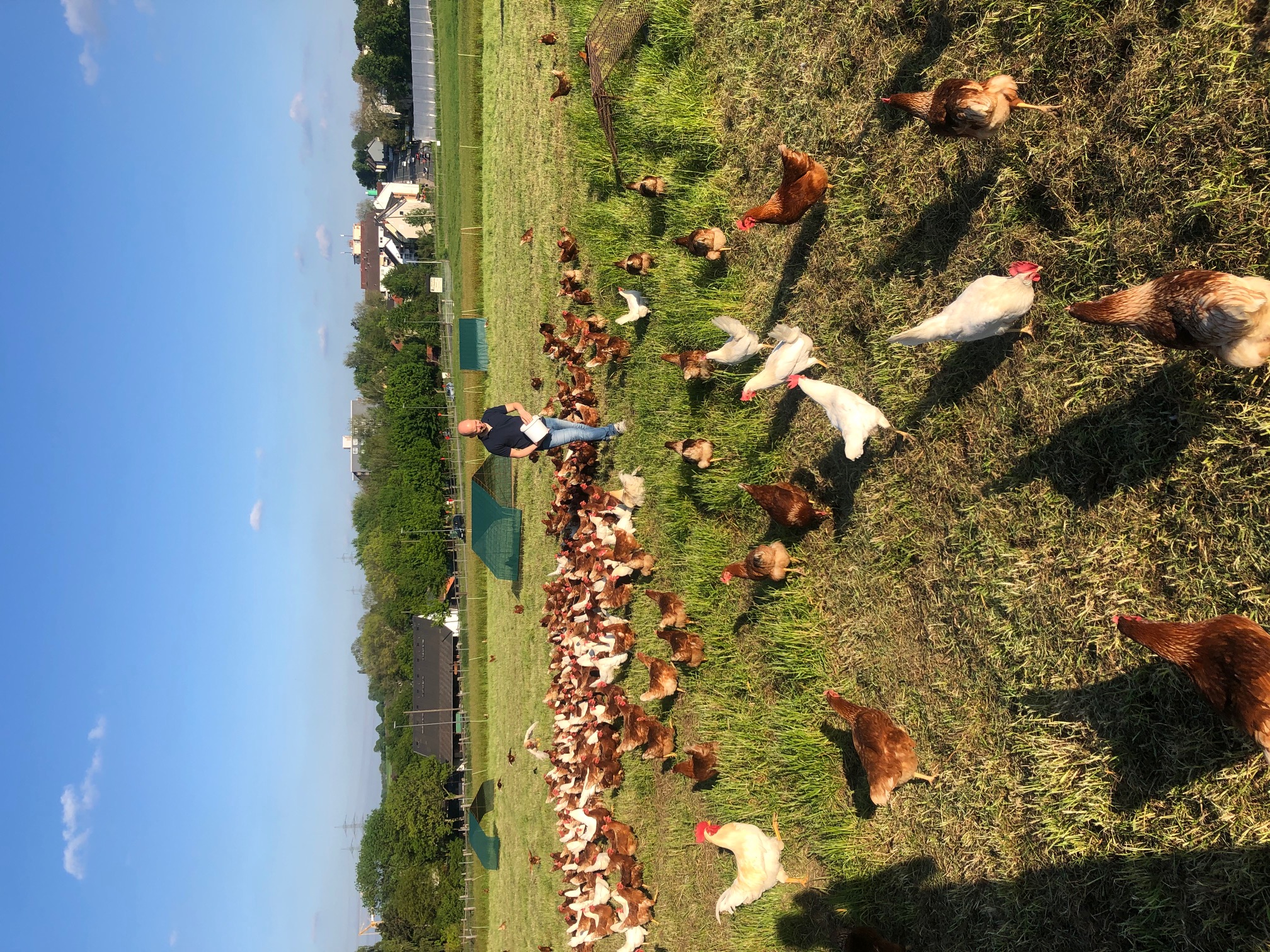 Da unsere hochmodernen Ställe über Räder verfügen, können wir sie regelmäßig versetzen, um unseren Hühnern immer eine frische, saftige Wiese bieten zu können. Das ist auch für unsere Böden optimal, da sie sich vollständig regenerieren können und neues Gras in Ruhe nachwachsen kann.