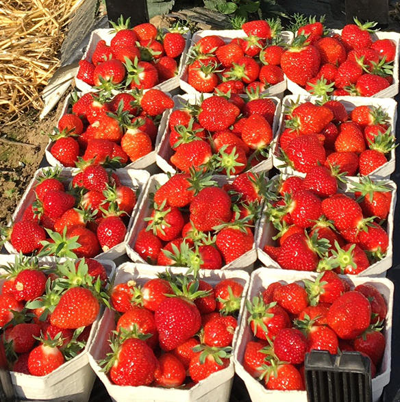 Auf etwa zwei Hektar wachsen unsere leckeren Erdbeeren. Dabei setzen wir auf unterschiedliche Sorten und Anbauarten, damit wir euch von Anfang Mai bis Ende Juni mit den fruchtigen Vitaminbomben versorgen können. Unser Erdbeerstand ist in der Saison täglich mit frischer Ware für euch geöffnet.