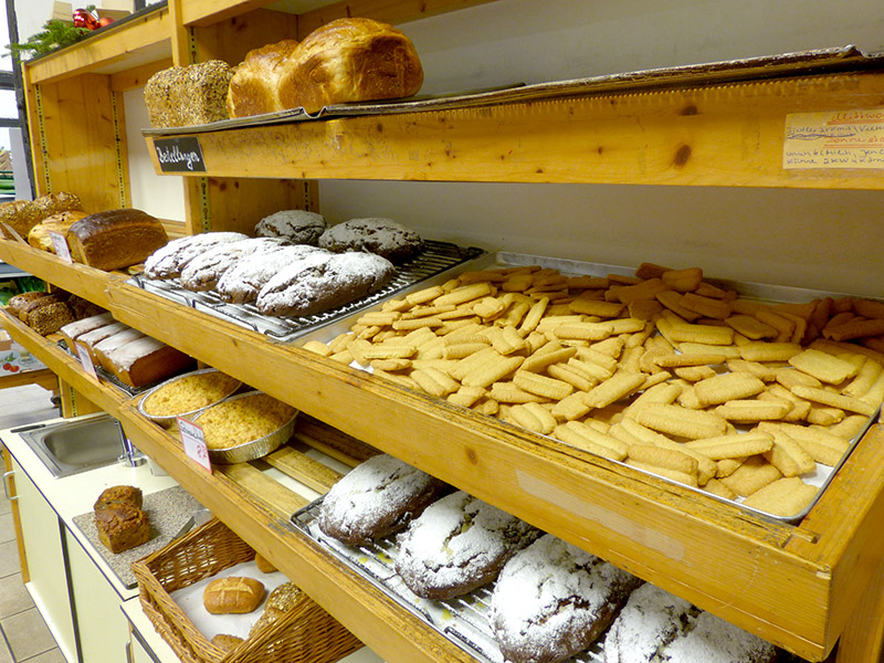 In unserer hofeigenen Backstube stellen wir jeden Morgen frische Kekse und Kuchen her. Unser Schmandkuchen ist der heimliche Star der Backstube: Er kommt mit seiner traditionellen Rezeptur besonders gut bei unseren Kund*innen an. Gern nehmen wir auch Vorbestellungen für Ihre Kuchen- und Keks-Wünsche an.